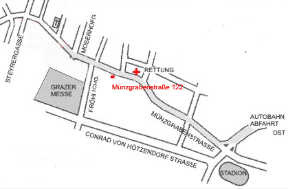 Anreise mit dem Auto: Von der A2 kommend Abfahrt Graz-Ost /Münzgrabenstraße; nach rechts in die Münzgrabenstraße einbiegen, das Appartementhaus befindet sich nach ca.1 km rechts.
